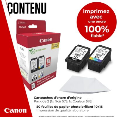 Canon PG-575+CL-576 Noir(e) / Plusieurs couleurs / Blanc Value Pack + 10×15 cm Fotopapier 50 Blatt